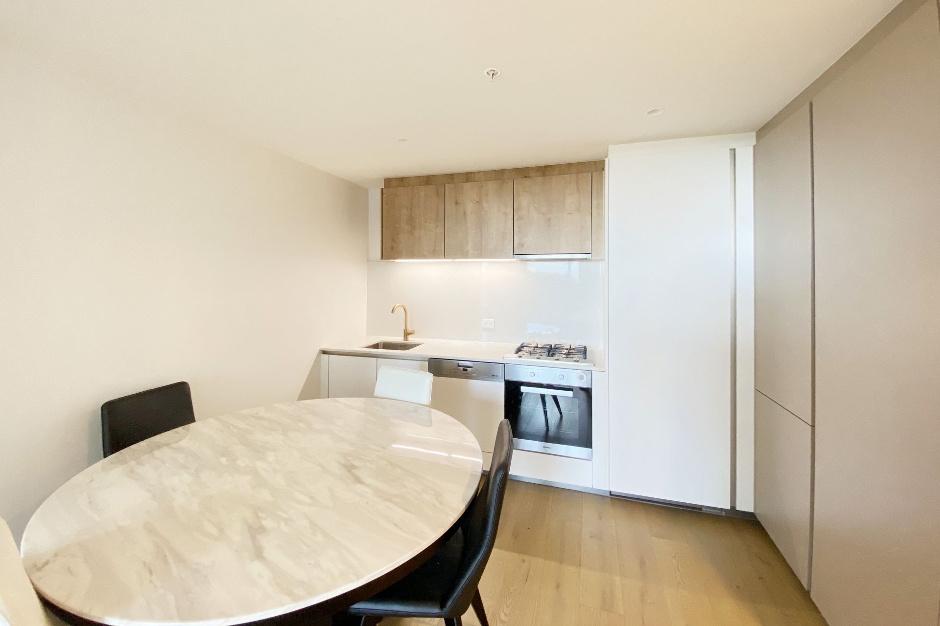 - Modern kitchen with European style cook top, oven, dishwasher