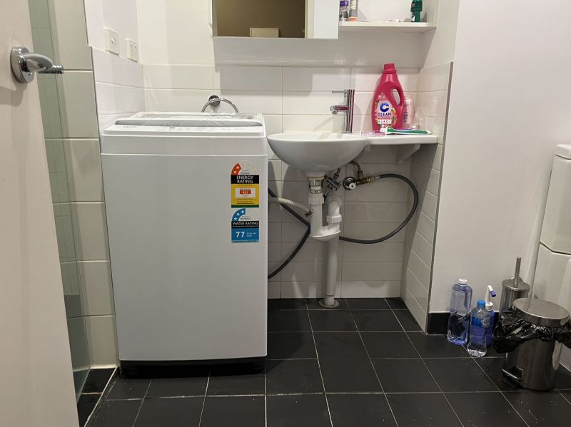 Located on level ten, the easy living design comprises an open-plan living, bedroom, and study area, with reverse cycle heating and cooling, full-width windows, a well-appointed galley-style kitchen, and a stylish bathroom. Additional features include security swipe card entry, lift access, and a private washing machine in the bathroom while other room in this building have to share communal laundry.