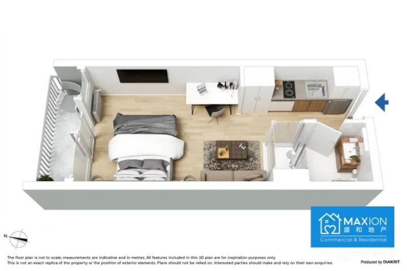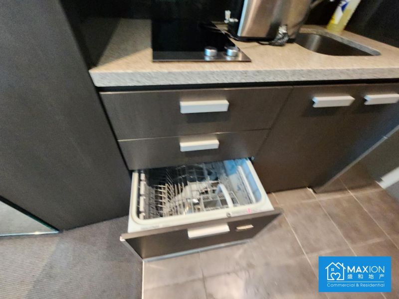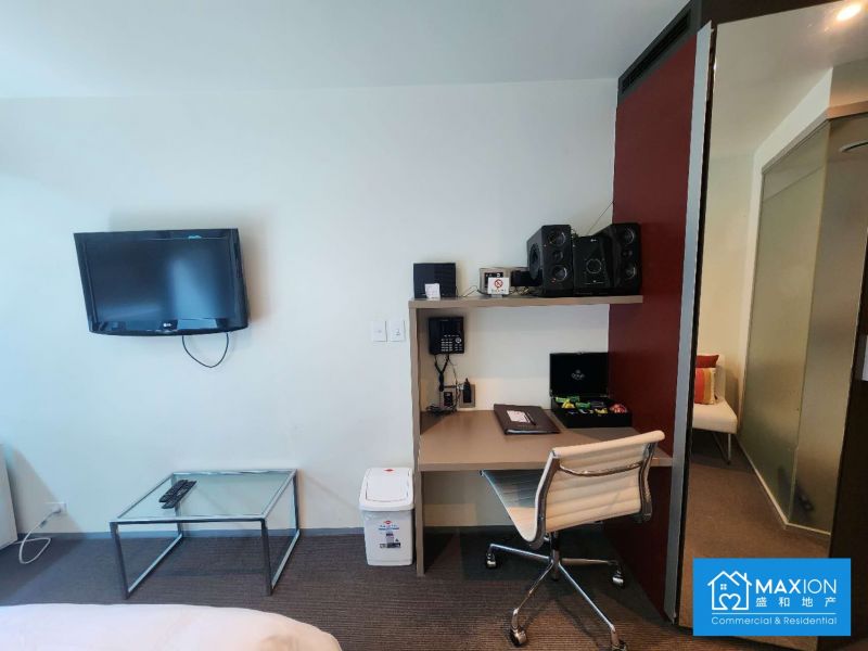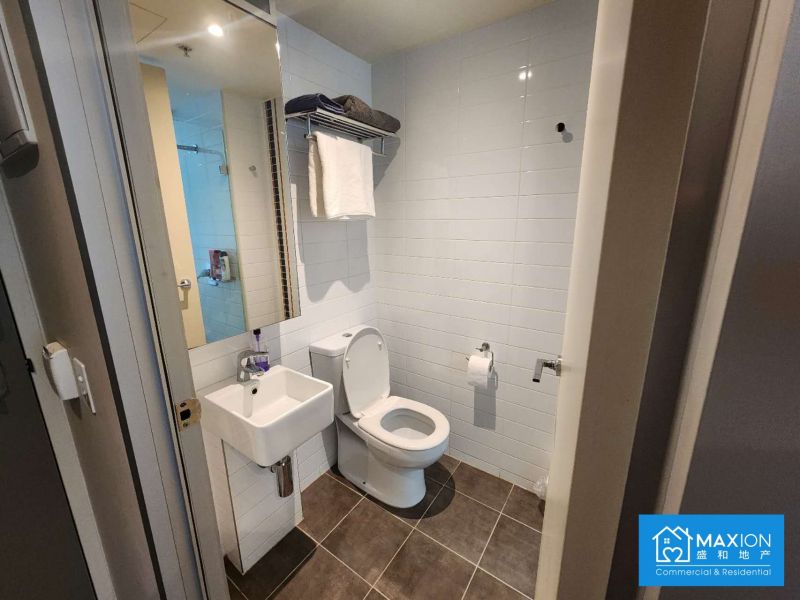 Bathed in brilliant natural light from expansive north-facing, floor-to-ceiling windows, the open-plan living and sleeping area feels both spacious and serene. Step out onto your private balcony to soak up the sun and enjoy fresh air amidst the urban landscape.