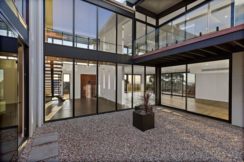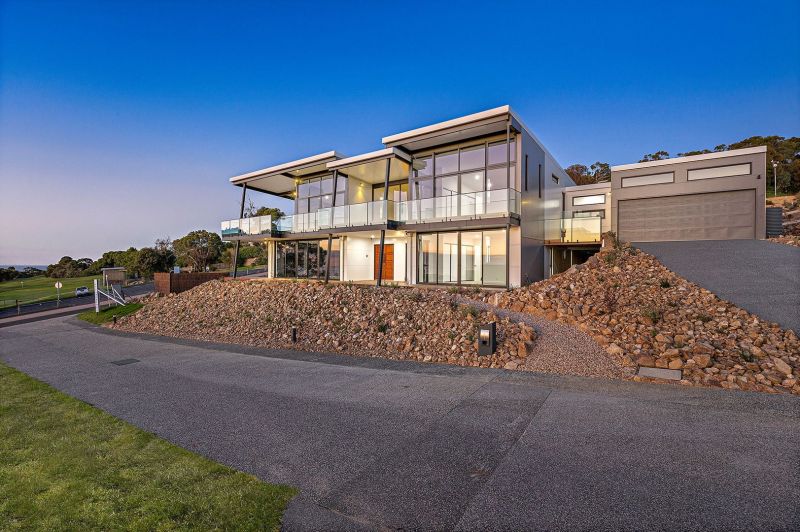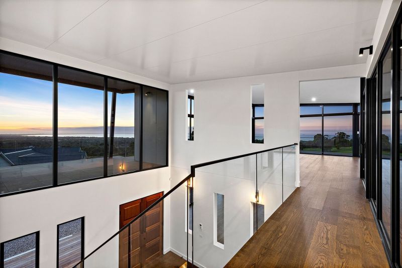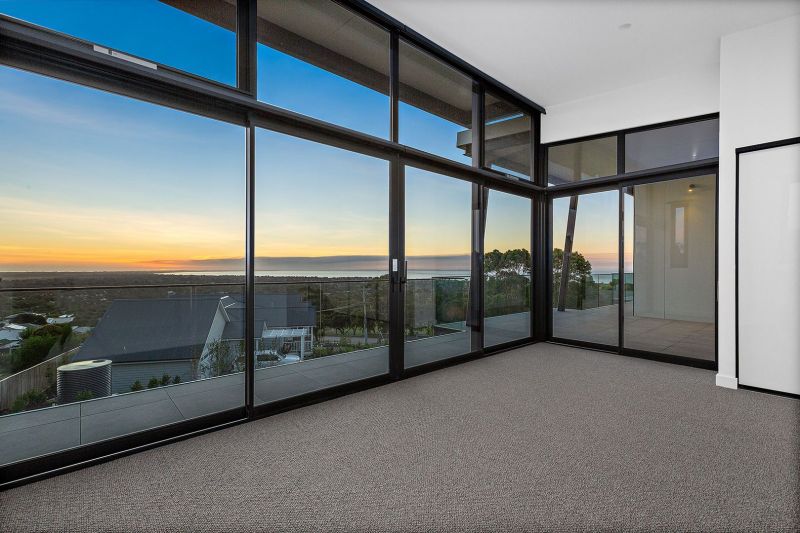 This architectural masterpiece seamlessly blends modern sophistication with timeless elegance, situated in one of Rosebud's most prestigious locations. A sanctuary of monochromatic beauty, the home offers sweeping panoramic views of both Bass Strait and Port Phillip Bay, while the design thoughtfully incorporates the natural splendor of Arthurs Seat National Park and the surrounding peninsula landscape.