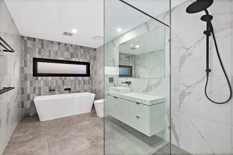 The master retreat is a private sanctuary, complete with built-in robes and a luxurious ensuite. Two additional bedrooms each feature built-in robes and ensuites, while a fourth bedroom, also with built-in robes, provides ample space for family or guests. A centrally located bathroom features a lavish freestanding bath, adding an extra touch of indulgence.